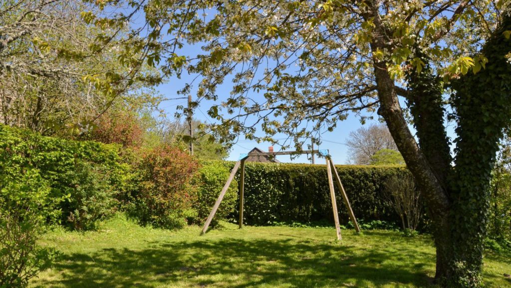 Vanuit de schuur loop je links en rechts de tuin in; aan beide kanten vind je een terras.