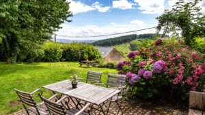Er zijn genoeg fijne lig- en zitstoelen met kussens, een grote parasol, eettafels en stoelen om lekker buiten te eten. Of ga lekker van het uitzicht genieten in de schommelbank op het terras. Er staat een BBQ en picknickmand voor je klaar.  Voor kinderen zijn er een schommel, ringen, buitenspellen en een zwembadje.